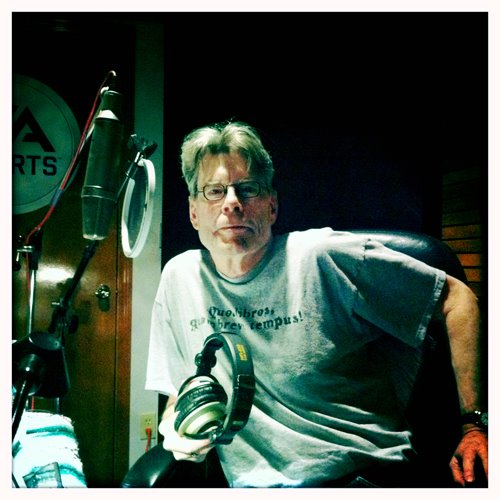 Stephen King no estúdio durante o processo de gravação do áudiobook de “the wind through the keyhole”, novo livro da Torre Negra, que tem sua versão em áudio narrada pelo próprio autor.